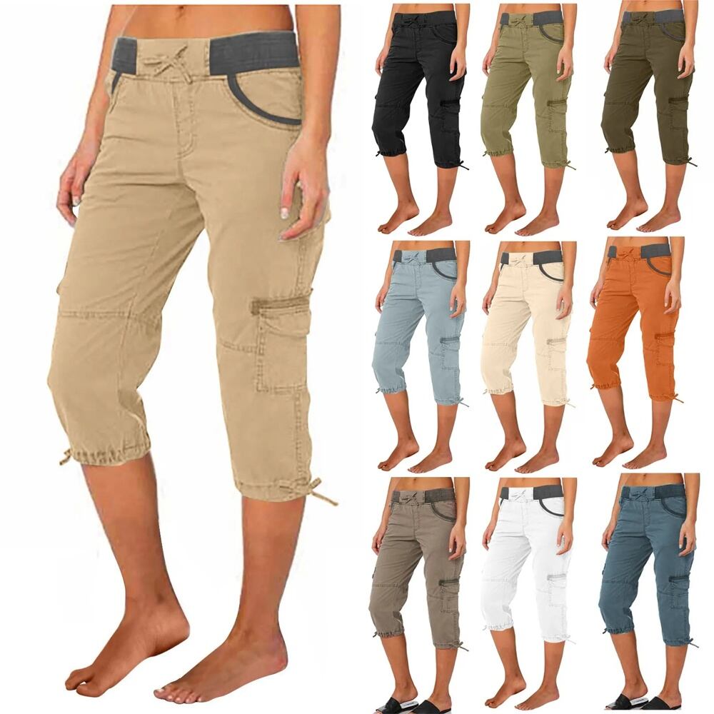 レディースマルチポケットカーゴパンツ、カジュアルストリートウェア、伸縮性ウエスト引きひも、7点オーバーオール、スポーツ、夏 y2k ボトムス T240831222429_10