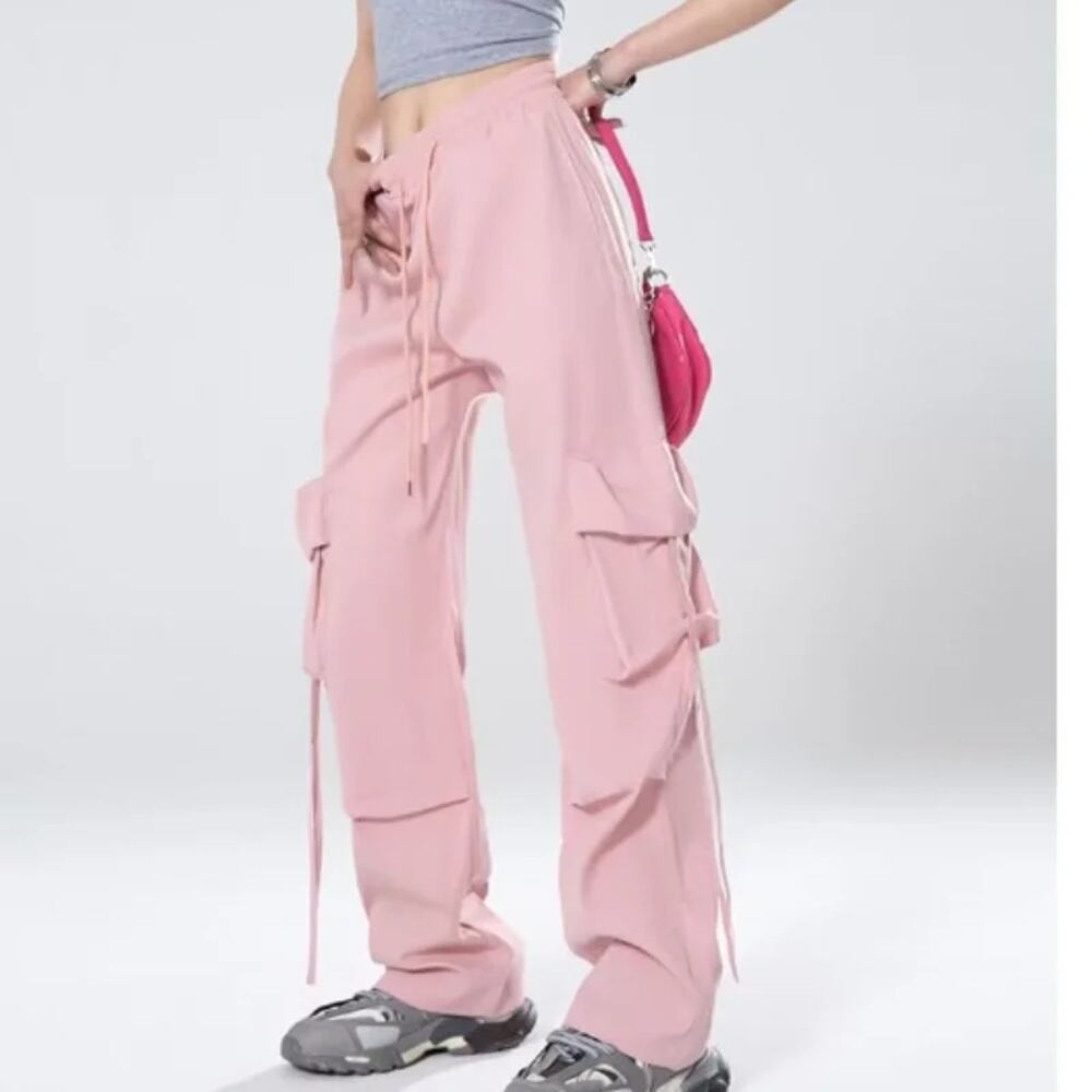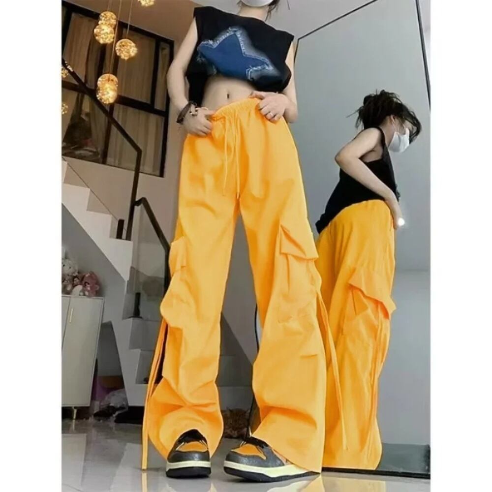 女性のヒップホップカーゴパンツ,カジュアルなストリートウェア,ハイウエスト,大きなポケットのパンツ,ドローストリングのバギー,ワイドレッグ,夏 y2k ボトムス T240831222645_01