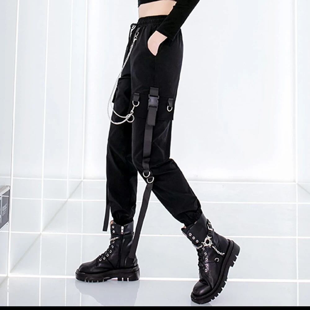ゆったりとしたカーゴパンツ,チェーン付き,女性用,ジョギング,カジュアル,ヒップホップスタイル,ルーズフィット,ストリートウェア,ロックスタイル y2k ボトムス T240831222704_01