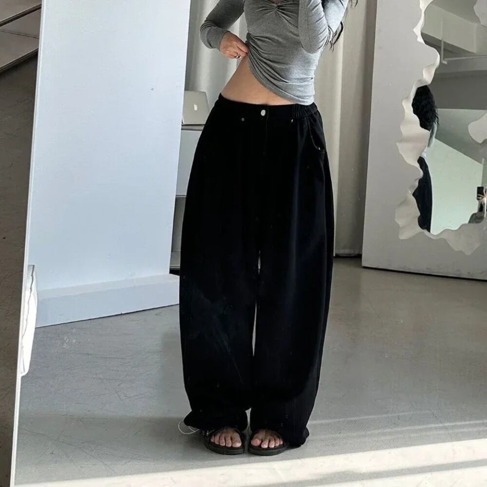 Qweek-女性用特大グレースウェットパンツ、レトロバギーパンツ、カジュアルスポーツストリートウェア、ヒップホップパンツ、ジョギング、アメリカンスタイル、y2k y2k ボトムス T240831222734_01