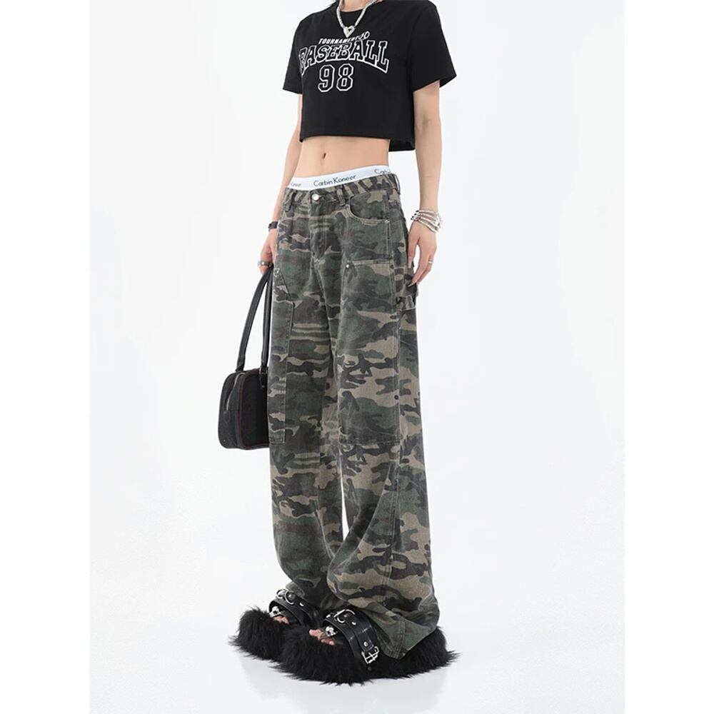 Y2k-女性用カモフラージュジーンズ,ハイウエストカーゴパンツ,ストレートファッション,バギー,カジュアル,デニム,ストリートウェア y2k ボトムス T240831222750_01