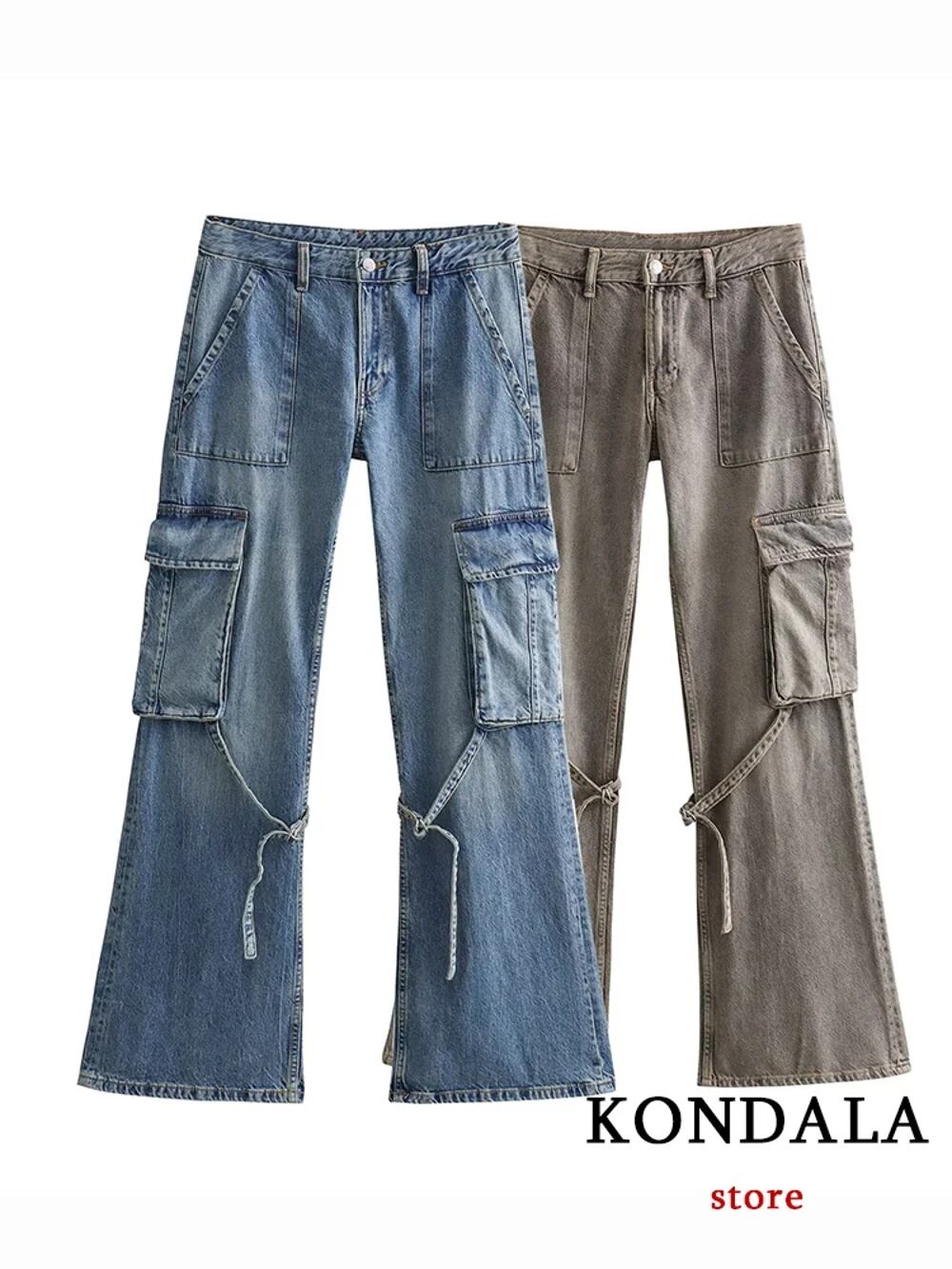 Kodala-女性のシックなデニムストリートウェア、フレアパンツ、スプリングポケット、y2k、Spectrool girl、ルーズスポーツティ、ジップカーゴパンツ、ファッション、春、2022 y2k ボトムス T240831222916_02