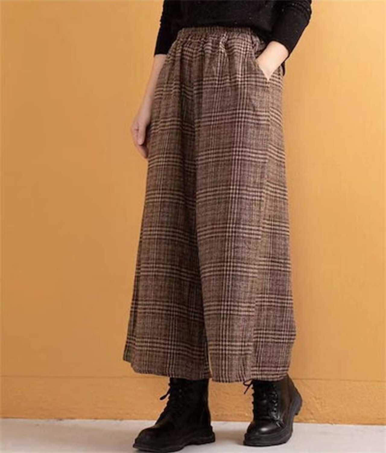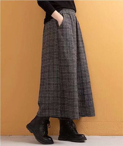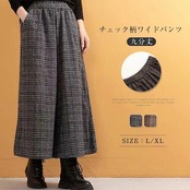 ワイドパンツ レディース 防寒 保温 スカーチョ 九分丈 ワイド 秋 冬 パンツ ガウチョパンツ チェック ボトムス ズボン イージーパンツ 楽ちん 暖パンツ ウエストゴム ポケット ふんわり カジュ