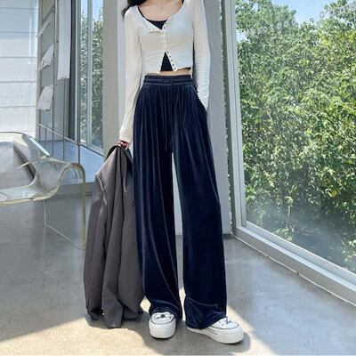 裏起毛パンツ レディース ベロアパンツ ワイドパンツ ガウチョパンツ ベロア ロングパンツ 無地 ロング丈 裏起毛 タック ゆったり 光沢感 ポケット付き ボトムス お洒落 冬 秋 イージーパンツ リ