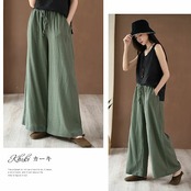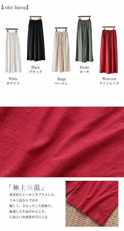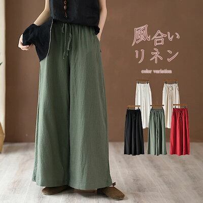ワイドパンツ レディース 夏 ガウチョパンツ 大きいサイズ リネン パンツ イージーパンツ パンツ ガウチョ ボトムス ウエストゴム リラックス カジュアル 無地 ロングパンツ ナチュラル ゆ
