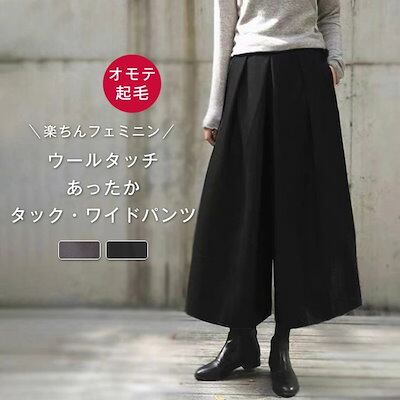 ワイドパンツ レディース 9分丈 スカーチョ ボトムス 秋 冬 おしゃれ ガウチョパンツ 厚手 ズボン ガウチョ ハイウエスト 大きいサイズ 無地 流行 きれいめ 美脚 細見え ウール 防寒 保温