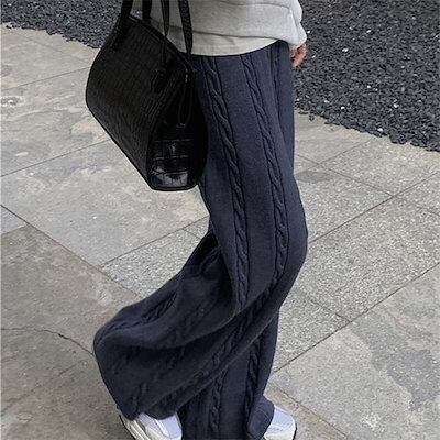 パンツ レディース ニット 秋冬 きれいめ ワイドパンツ ロング ボトムス ウエスト ゴム 暖か 防寒 ガウチョパンツ 大人 ゆったり リラックス きれいめ おしゃれ シンプル カジュアル 通勤 リブ