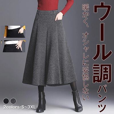 ガウチョパンツ ワイドパンツ レディース 秋冬 きれいめ 9分丈 フレア ミモレ丈 ハイウエスト ガウチョ 大きいサイズ ボトムズ 大人 オフィス 美脚 通勤 黒 無地 ゆったり おしゃれ オフィスカ