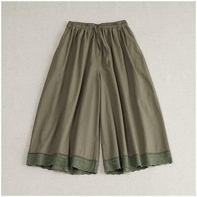 綿100% ワイドパンツ レディース 裾レース ワイド パンツ ガウチョパンツ 大きいサイズ イージーパンツ キュロットパンツ ロング ボトムス 無地 総ゴム ゆったり ゆる 体型カバー 美脚 通勤