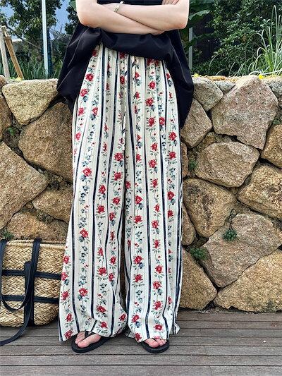 花柄パンツ レディース ワイド ワイドパンツ 夏 涼しい ひんやり ガウチョパンツ イージーパンツ 花柄 総柄 大きいサイズ ゆったり ゆる ボトムス 春夏 ロングパンツ マキシパンツ マキシ丈 体型