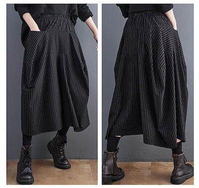ワイドパンツ レディース 大きいサイズ 秋冬 きれいめ スカート 個性的 ゆったり ストラップ ワイド パンツ 秋 冬 カジュアル ガウチョパンツ スカート ウエストゴム 美脚パンツ ボトムス 着痩せ