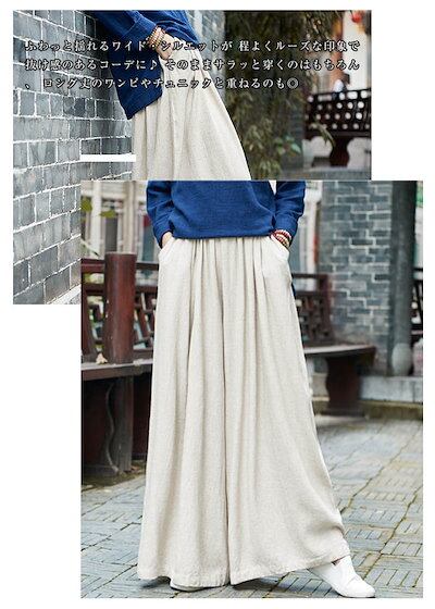 ワイドパンツ レディース ガウチョパンツ レディース 秋冬 春 夏 大きいサイズ ゆったり ボトムス 綿麻混 コットンリネン フレアパンツ 体型カバー ウエストゴム 無地 リラックス 着痩せ 美脚 通