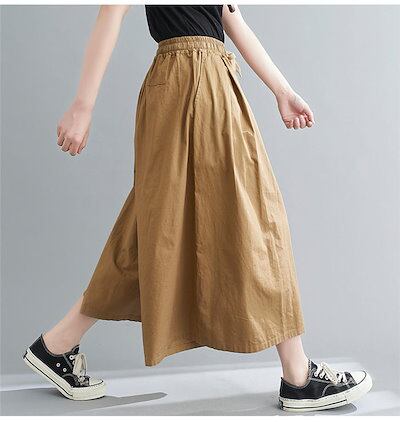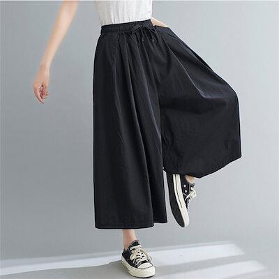 ワイドパンツ レディース 大きいサイズ 夏 コットン パンツ レディース ウエスト ゴム 9分丈 ワイド ガウチョパンツ 春 夏 タックパンツ ゆったり ボトムス タック 体型カバー 無地 リラックス