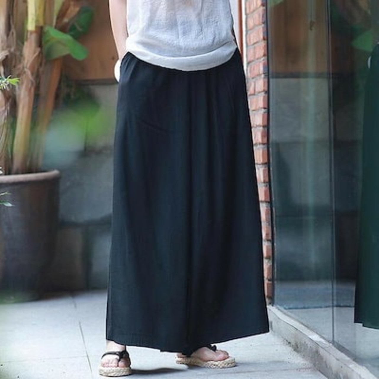 綿麻混パンツ ワイドパンツ スカーチョ ガウチョパンツ ボトムス レディース ワイド パンツ 無地 ロング リネンパンツ 綿麻 リネン 体形カバー 大きいサイズ ゆったり 夏パンツ カジュアル 大人