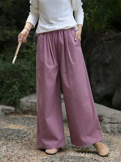 綿100% ワイドパンツ レディース きれいめ ガウチョパンツ 春 秋 レディース カジュアル ギャザー パンツ 大きいサイズ ゆったり ボトムス 体型カバー ウエストゴム 無地 リラックス 着痩せ