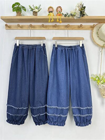 デニムパンツ レディース ガウチョパンツ コットン ワイドパンツ デニム パンツ 9分丈 ボトムス ウエストゴム 春秋 春 夏 秋 レディースパンツ スラックス 大人パンツ キレイめ カジュアル 大人