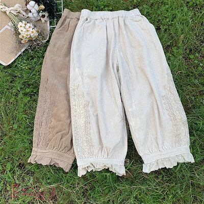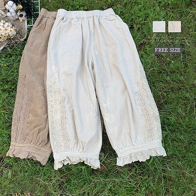 コーデュロイ パンツ レディース 秋 ガウチョパンツ コットン レース ボトムス ウエストゴム ワイドパンツ 春秋 秋冬 レディースパンツ スラックス 大人パンツ キレイめ エレガント 大人 お洒落