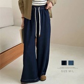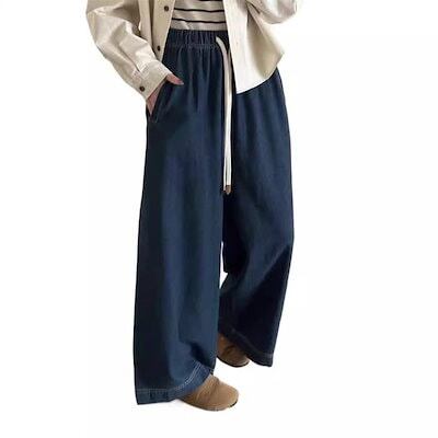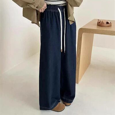 パンツ デニムパンツ レディース ガウチョパンツ コットン ワイドパンツ デニム パンツ 無地 リポン ボトムス ウエストゴム 春秋 春 夏 秋 レディースパンツ スラックス 大人パンツ キレイめ カ