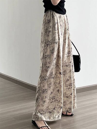 ワイドパンツ 夏 レディース ハイウエスト フレアパンツ 柄 夏 ガウチョパンツ 花柄 総柄 春 夏 大きいサイズ ゆったり ボトムス キュロット パンツ 体型カバー ロングパンツ ウエストゴム リラ