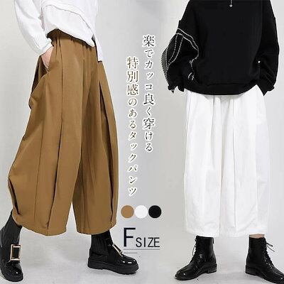 タック ワイドパンツ レディース ガウチョパンツ レディース 秋 冬 春 タックパンツ 大きいサイズ ゆったり ボトムス タック 体型カバー ウエストゴム 無地 大人 オリジナル 着痩せ 美脚 通勤