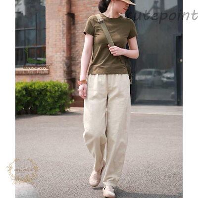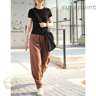 ワイドパンツ 綿麻調 イージーパンツ レディース 春 秋 ガウチョパンツ 体型カバー おしゃれ ゆったり カジュアル ナチュラル 体型カバー 大きいサイズ