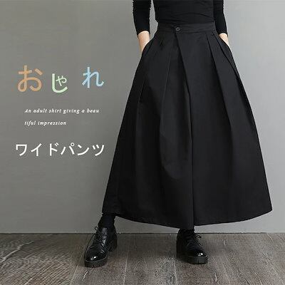 ワイドパンツ 黒 レディース ボトムス パンツ フレアパンツ ウエストボタンデザイン ゆったり 春秋 バックゴム ガウチョパンツ 着痩せ 体型カバー スカンツ ロングパンツ ロング丈 大きいサイズ キ