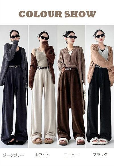 ワイドパンツ 秋冬 裏起毛 パンツ レディース ロングパンツ 微起毛 ガウチョパンツ 体型カバー パンツ ストレートパンツ ロング ロング丈パンツ コーデュロイ 秋物 裏起毛 ウェストゴム ゆっると