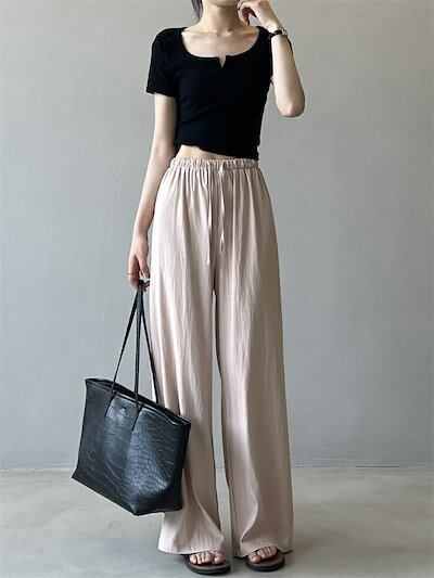 ワイドパンツ ガウチョパンツ パンツ レディース 夏 バギーパンツ 涼感 ウエストゴム ゆったり フレアパンツ ウエストリボン 夏 ロングパンツ 美脚 薄手 ゴム ロング丈パンツ ひんやり 細見え 着