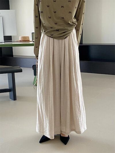 ワイドパンツ 夏 レディース ロングパンツ パンツ ボトムス ワイド フレアパンツ リネンパンツ イージーパンツ ガウチョパンツ ウェストゴム ハイウェスト 春夏 ゆったり カジュアル キレイめ リラ