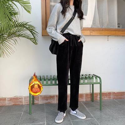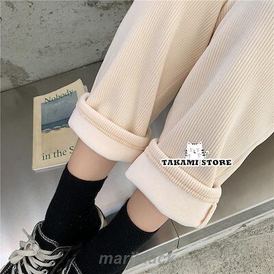 コーデュロイ ワイドパンツ レディース 裏起毛 ロングパンツ ウエストゴム ガウチョパンツ 体型カバー 冬 春 秋 着痩せ コーデ 暖かい ストレート