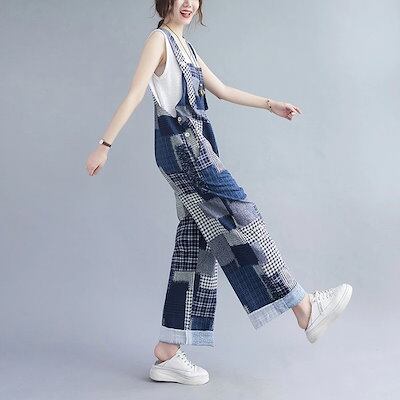 オーバーオール リラックスワイドパンツ オーバーオール サロペット レディース パンツ 春 夏 秋 冬 チェック オールインワン ゆったり ロング丈 カジュアル おしゃれ 体型カバー お呼ばれ ズボ