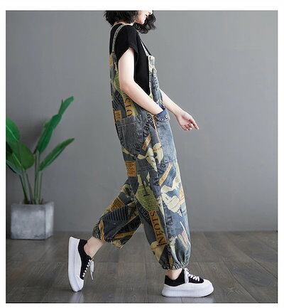 サロペット オールインワン デニム レディース 総柄 ワイドパンツ バルーンパンツ ポケット ナチュラル 春夏秋冬 大きいサイズ ゆったり 体型カバー オールシーズン 着?せ 大人可愛い 森ガール カ