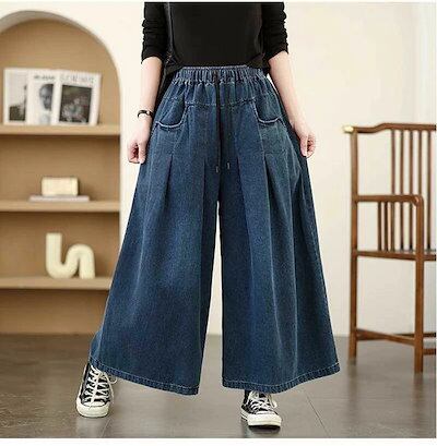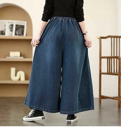 ワイドパンツ デニム デニムパンツ レディース 大きいサイズ ワイドデニム ジーンズ ジーパン ライトデニム ゆるボトム ルーズ おしゃれ 春 秋 冬 長め ロング丈 フレアパンツ ボトムス ゆったり