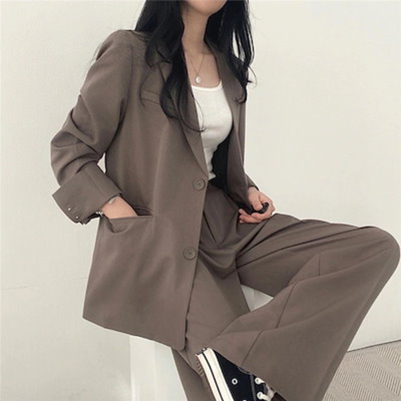 アウター 二点セット スーツ 卒園式 ビジネススーツ ママ カジュアルゆったり スーツ ジャケット/ワイドパンツ レディース フォーマル 通勤 セットアップ 春 春