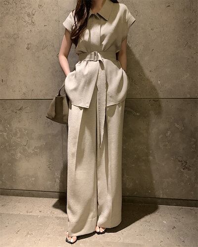セットアップ レディース ワイドパンツ フレンチスリーブ ブラウス 春 夏 トップス パンツ ロング丈 ブラウス ロングパンツ フォーマル ハイウエスト ベルド付き 上品 2点セット 高級感 涼しい
