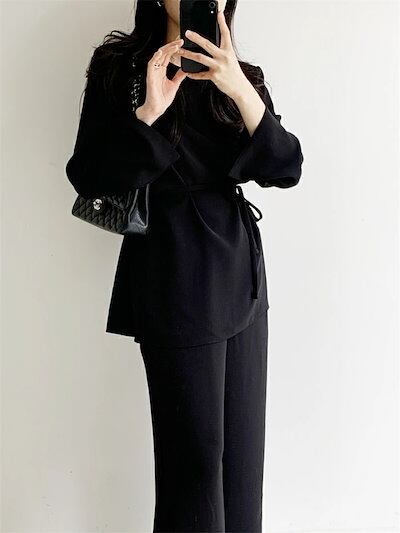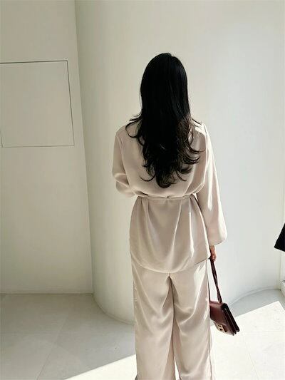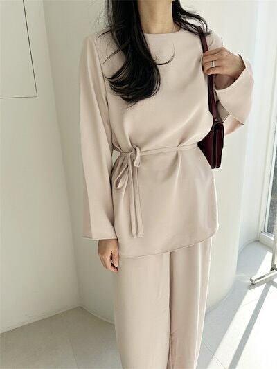セットアップ レディース ワイドパンツ 長袖トップス ブラウス 春 秋 トップス パンツ ロング丈 ロングパンツ ウエストゴム フォーマル ハイウエスト 上品 2点セット ポケット 落ち感 着痩せ シ