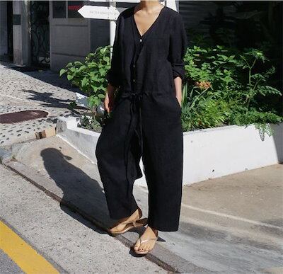 オールインワン レディース サロペット 九分丈 春 夏 ゆったり パンツドレス つなぎ オーバーオール 綿麻 パンツ ワイドパンツ ワイド クルーネック ポケット 無地 コットン 涼しい 体型カバー