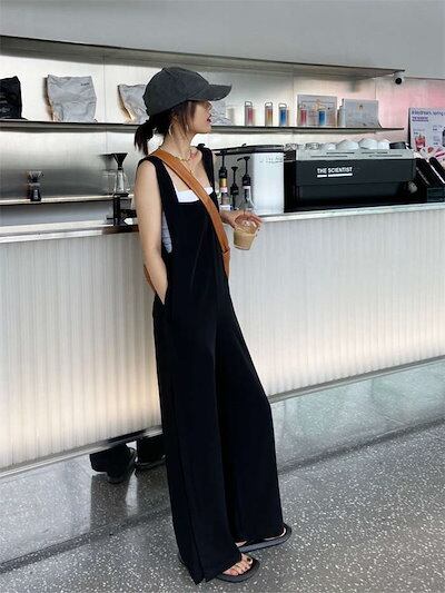 サロペット パンツ レディース 大きいサイズ ロング 春 夏 秋 オフィス 仕事 オールインワン キャミ ワイドパンツ ナチュラル オーバオール ガウチョパンツ 無地 ゆったり カジュアル 体型カバー