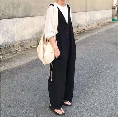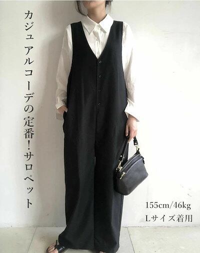 サロペット レディース 春秋 オールインワン とろみ感 サロペットパンツ ワイドパンツ マタニティ Vネック きれいめ 着痩せ 大きいサイズ カジュアル 春 夏 秋 ゆったり 体型カバー 着痩せ OL