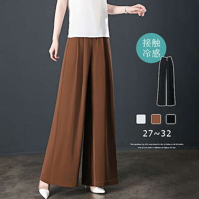 パンツ レディース ワイドパンツ きれいめ オフィス 春 夏 接触冷感 ひんやり ボトムス 長ズボン ガウチョパンツ スカーチョ 紫外線対策 薄手 ハイウエスト 体型カバー 無地 着痩せ 美脚 通勤