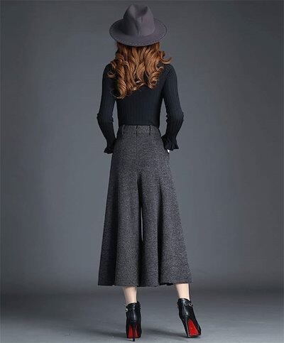 ワイドパンツ レディース フレアパンツ パンツスカート 厚手 ボトムス ガウチョ 春 秋 冬 無地 あったか 防寒 9分丈 ズボン きれいめ カジュアル スカーチョ ハイウエスト ウールタッチ 体型カ