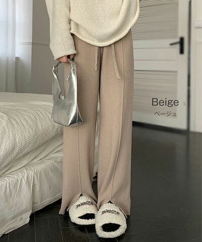 ワイドパンツ ニットパンツ レディース スリットパンツ イージーパンツ スリット入り フレアパンツ ストレッチ ウエストゴム ボトムス 美脚 無地 ロングパンツ ボトム ズボン 春 秋 冬 カジュアル