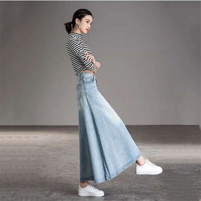 ワイドパンツ レディース デニム きれいめ 大きいサイズ ジーンズ 春夏 パンツ デニムパンツ ガウチョパンツ ボトムス ワイド ハイウエスト ストレート 股上深め ゆったり ロング 体型カバー 美脚