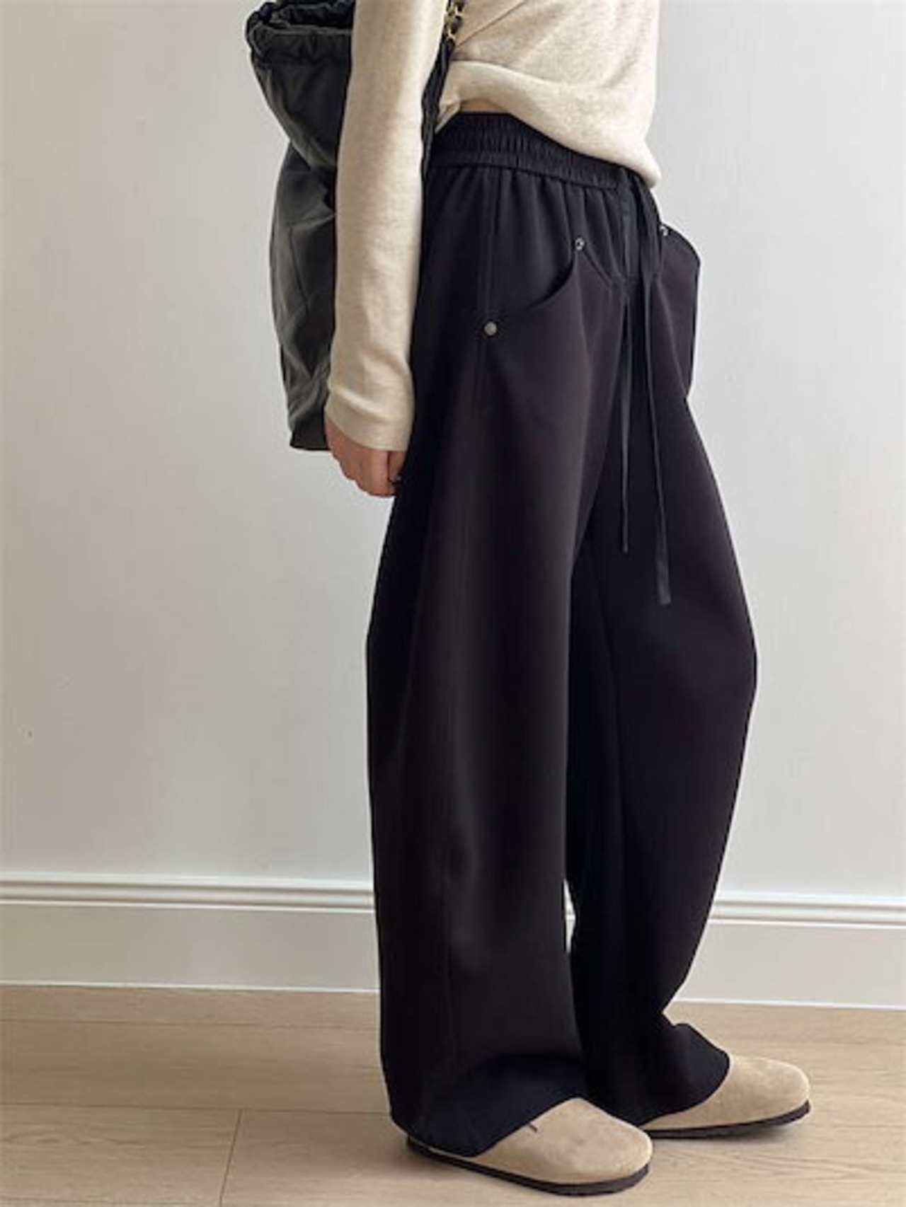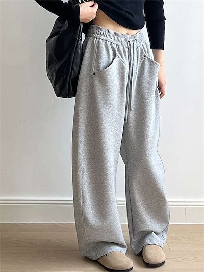 ワイドパンツ ストレートパンツ レディース ロング丈 ポケット付き 春 秋 冬 スウェット 無地 シンプル ジャージーパンツ ボトムス ストレート イージーパンツ ウエストゴム ワイド 大きいサイズ