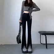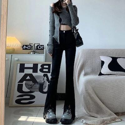 韓国ファッションジーンズ レディース脚長効果 美脚効果 細見え ワイドパンツ デニム ズボン レディース ロングズボン モップパンツ デニムボトムス デニムパンツ ひんやりボトムス ワイドパンツ 福袋
