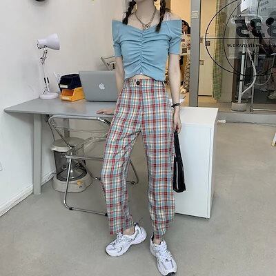 【新品発売】【大人気セッ】 スキニーパンツ ワイドパンツ 韓国ファッション スラックスパンツ ズボン ボトムス ジョガーパンツ チェック ゆったり レディース ロングパンツ ズボン テーパードパンツ