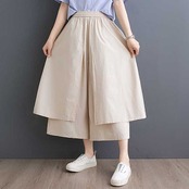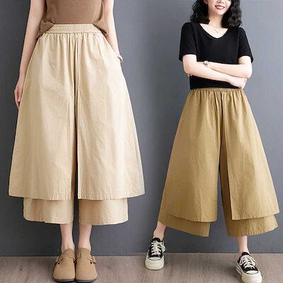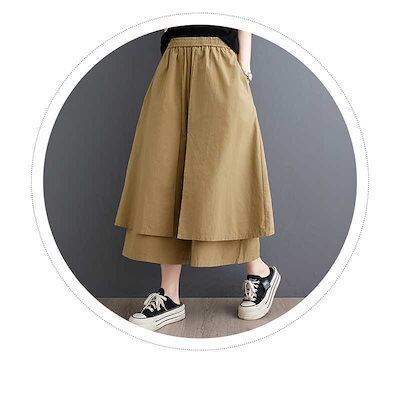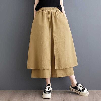 「ファットガール」 2024夏新品 ワイドパンツ キュロットスカート 無地 ハイウエスト レイヤード ニセ2SET レディース ロングパンツ メガ割 福袋
