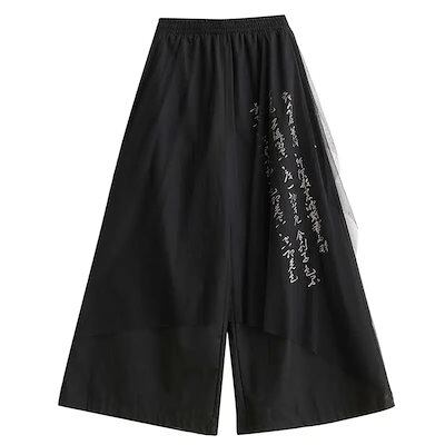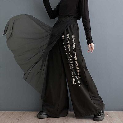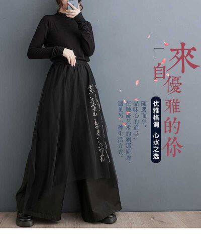 「ファットガール」 2024春新品 キュロットスカート チュール ワイドパンツ シフォン 古風 中華風 ドッキング 体型カバー レディース ロングパンツ 福袋