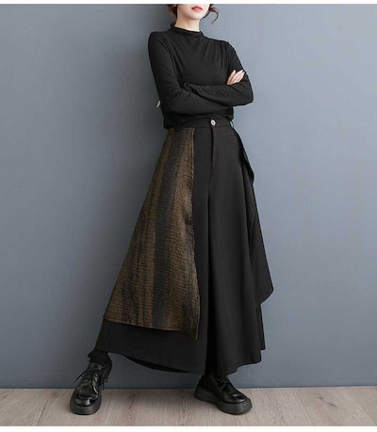 「ファットガール」 2024春新品 キュロットスカート ワイドパンツ ドッキング スラックス 体型カバー レディース ロングパンツ 福袋