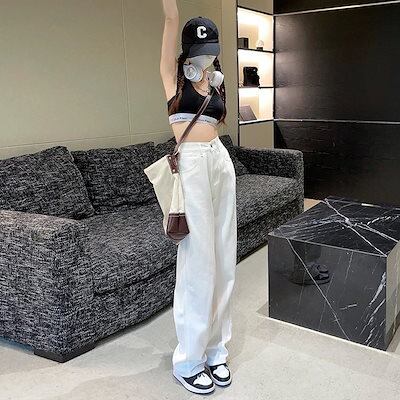 2024新作 ホワイト ワイドパンツ レディース ハイウェスト 春 着痩せ ストレートパンツ ジーンズ